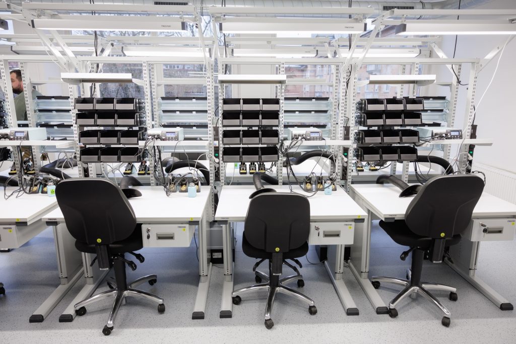 E-MakersLAB has been opened at the Faculty of Electronics and Informatics of VIKO – an electronics manufacturing laboratory for advanced development, testing and repair of electronic equipment. The laboratory is equipped with individual, electrostatically protected workstations, allowing you to work safely with sensitive components and ensuring the highest standards of electrostatic discharge (ESD) protection. Special ESD flooring ensures surface grounding and prevents the accumulation of static electricity.