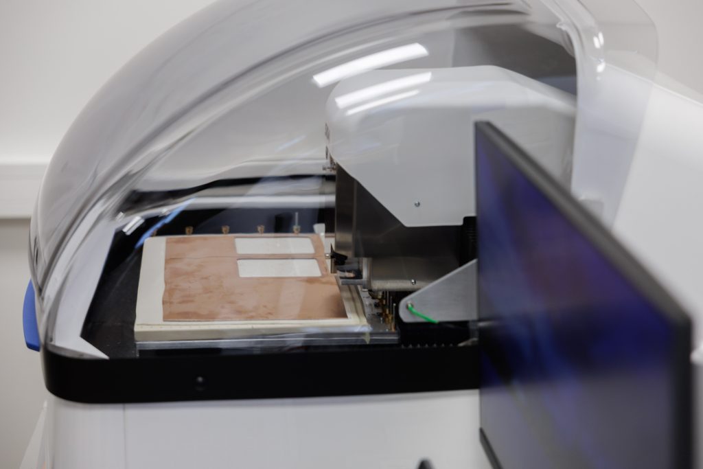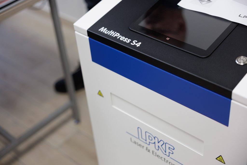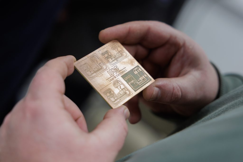 E-ProtoLAB: electronics prototyping laboratory. A newly equipped laboratory equipped with professional Printed Circuit Board (PCB) structuring and manufacturing equipment, allowing you to perform all printed circuit board production cycles on site. It is planned to use two types of structuring machines – mechanical-laser and mechanical, designed for the formation of printed circuit boards and ensuring accurate geometry according to design requirements. The press with accessories allows for the production of up to 8-layer boards, and the manual prototype assembly system allows for the rapid assembly of small-scale and single-unit electronic modules. Additionally, the laboratory will use solder masks and silkscreen materials with their formation equipment, as well as electroplating equipment for the formation of copper layers.